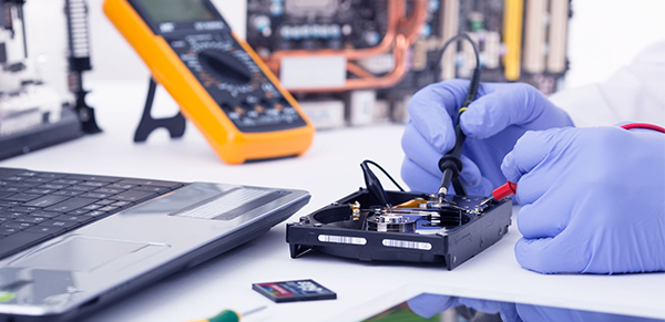 Сотрудник сервиса делает восстановление: заменяет дефектную комплектующую исправной оригинальной комплектующей